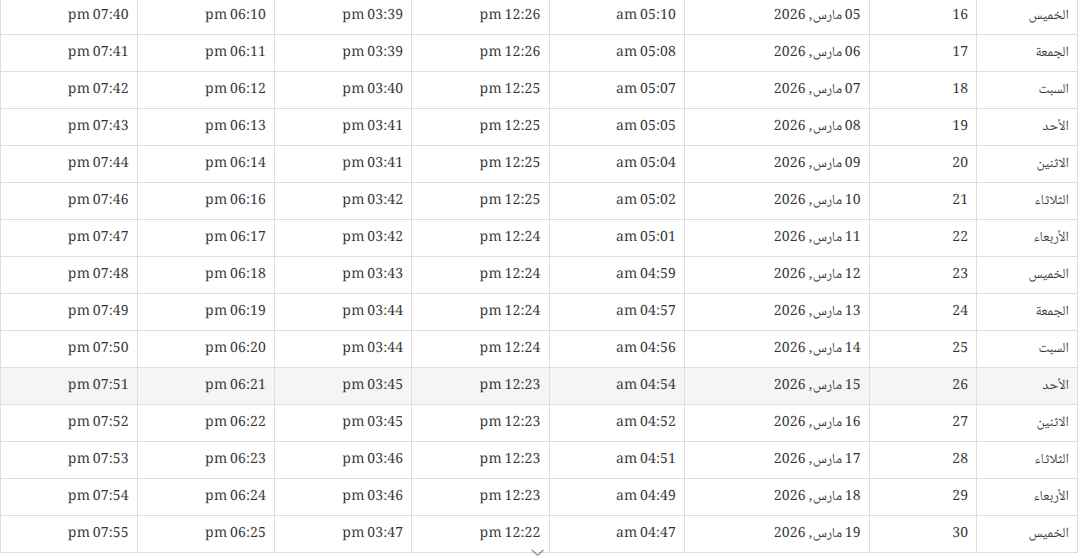 تقويم امساكية رمضان في بكين لعام 1447 / 2026 ومعرفة اوقات الإفطار والسحور يومياً
